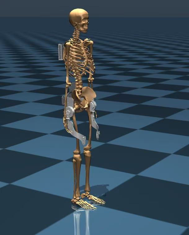 Modeled early versions of the lab’s hip exoskeleton in MuJoCo