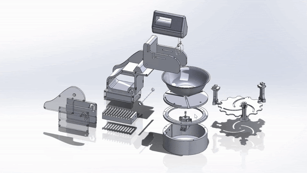 Adjustable clamps + rotating base + motorized bowl