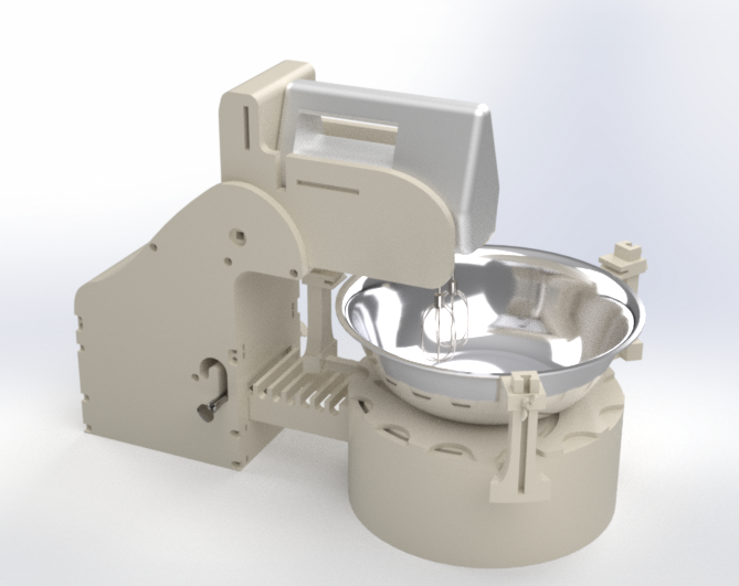 In this mechanical design class at CMU, my team and I built a rotating hand-mixer stand for users with arm or hand muscle weakness. It’s basically a low-cost, accessible alternative to a stand mixer using simple mechanics and PLA parts.